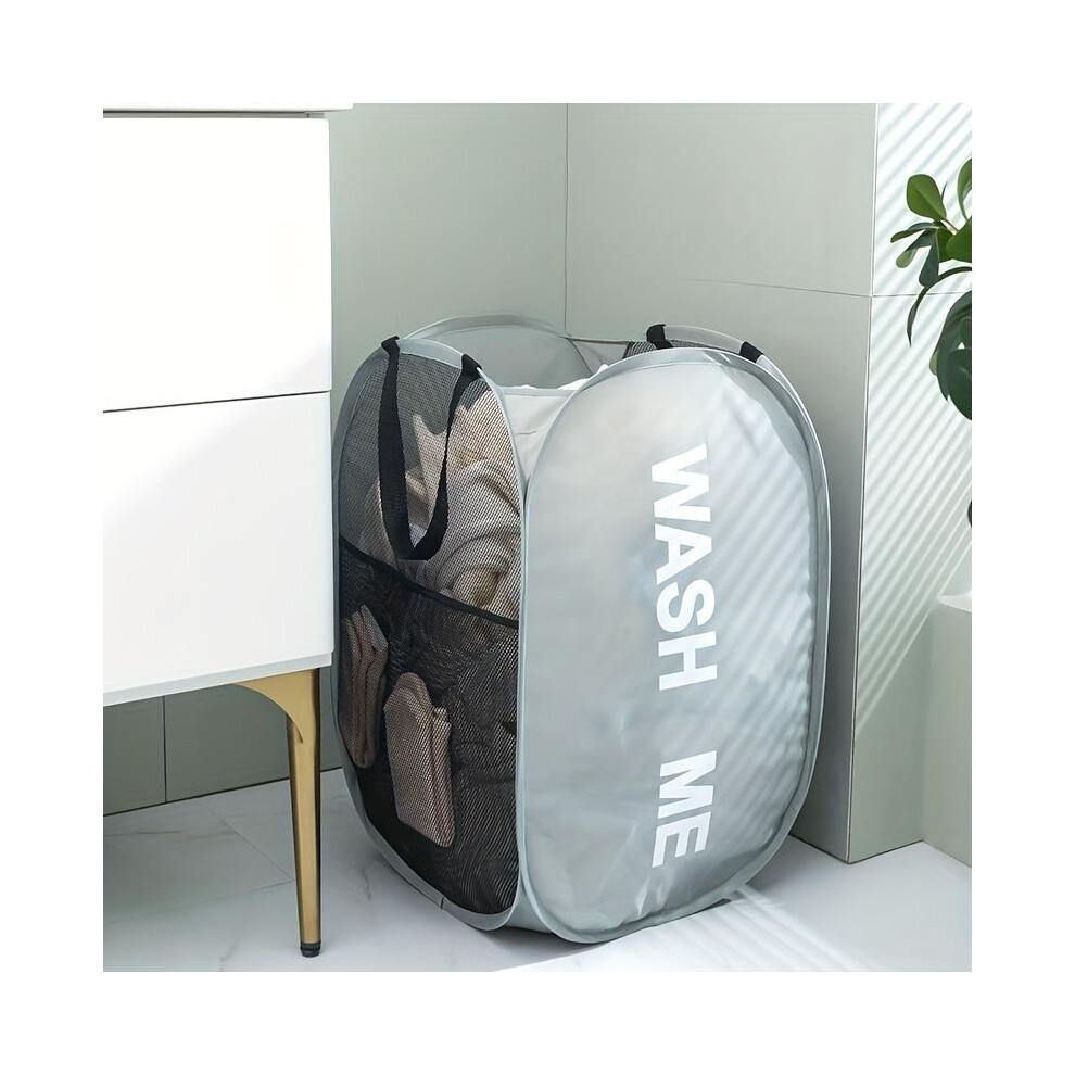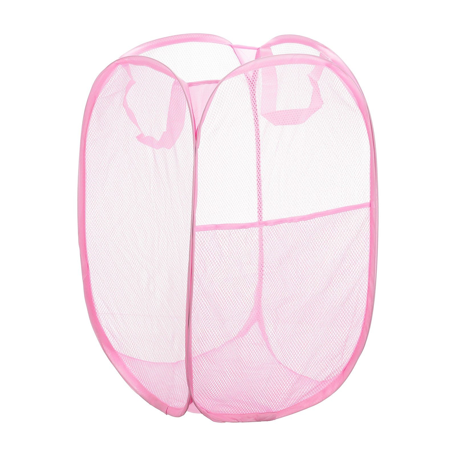 Mesh Laundry Basket Collapsible Laundry Hamper with Handles Side Pocket, Pink