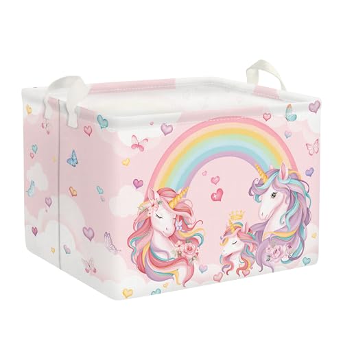 Clastyle Pink Unicorn Baby Laundry Hamper Collapsible Clothes Kids Storage Basket Waterproof Girls Toy Box for Nursery Room, Rainbow, 40 * 30 * 30 cm