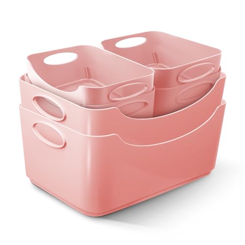 KEPLIN Plastic Studio Basket - Container Boxes for Storage Organising in Home or Office - Suitable for Shelfs Drawers Laundry Cupboard (Pink, Set of 6)