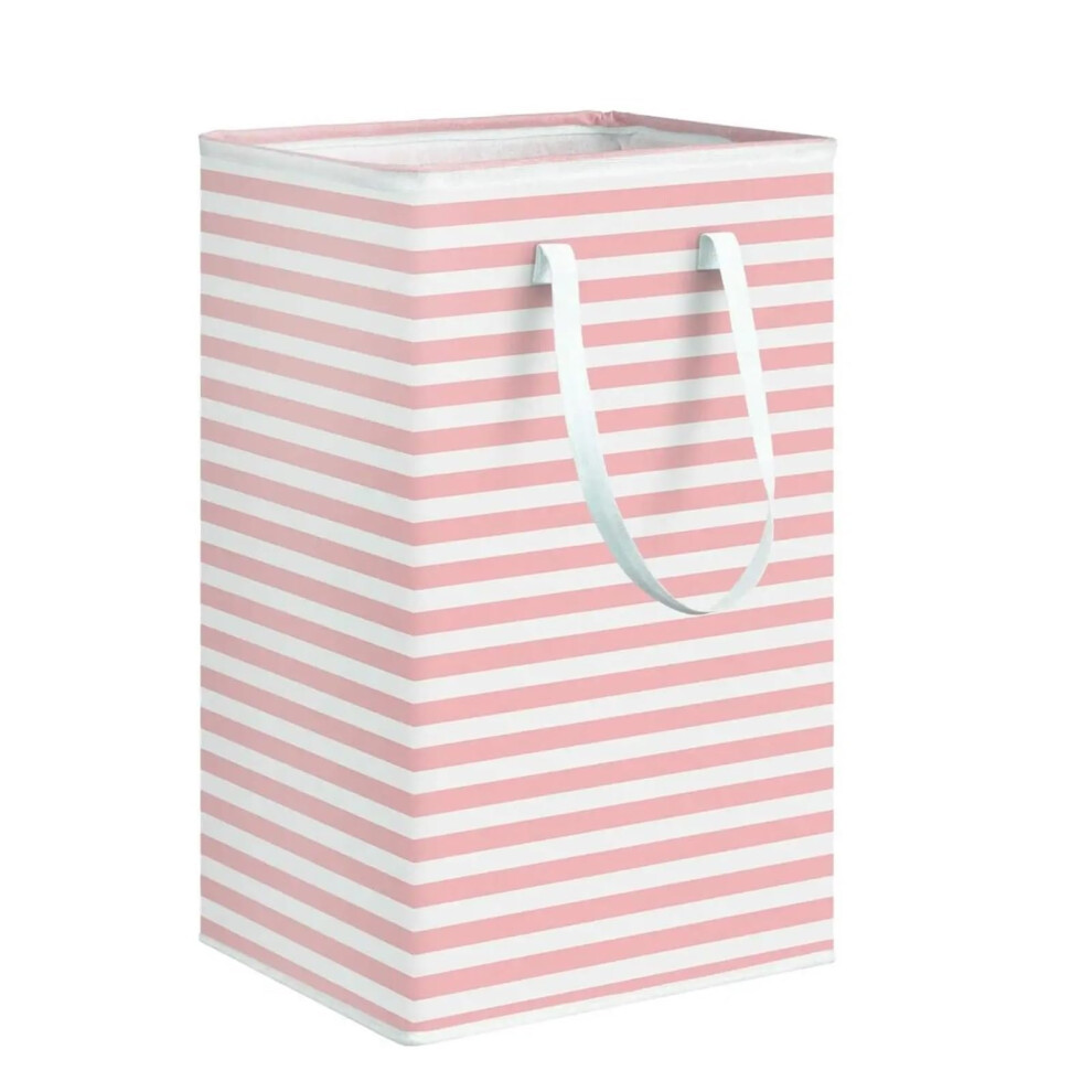Laundry Basket 75L Large Clothes Storage Hamper with Extended Handle for Bedroom Toys Foldable Pink Stripes