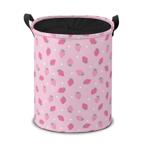 Drawstring Laundry Basket - Pink Strawberry Pattern Spacious Storage Bin, Dustproof & Easy to Clean for Bathroom, Bedroom & Car