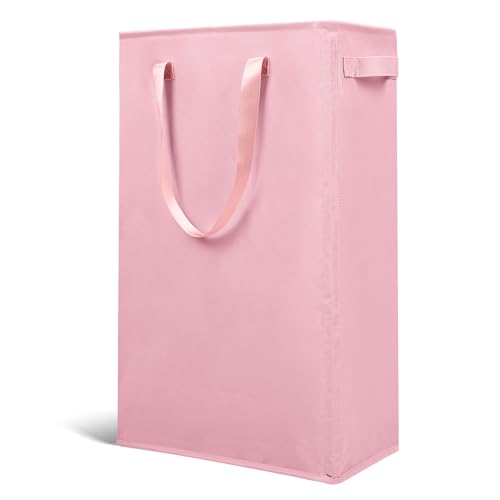 Odonata Slim Laundry Hamper Handles Collapsible Laundry Basket Thin Dirty Clothes Basket Narrow Laundry Bag Foldable Dirty Hamper 45L (Pink)