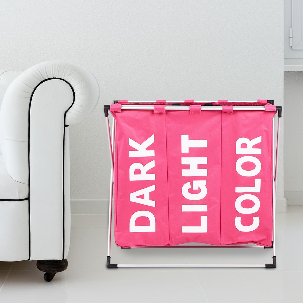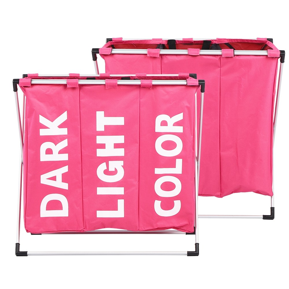 Simple Compartmented Laundry Basket Pink Oxford Cloth Foldable Dirty Clothes NEW
