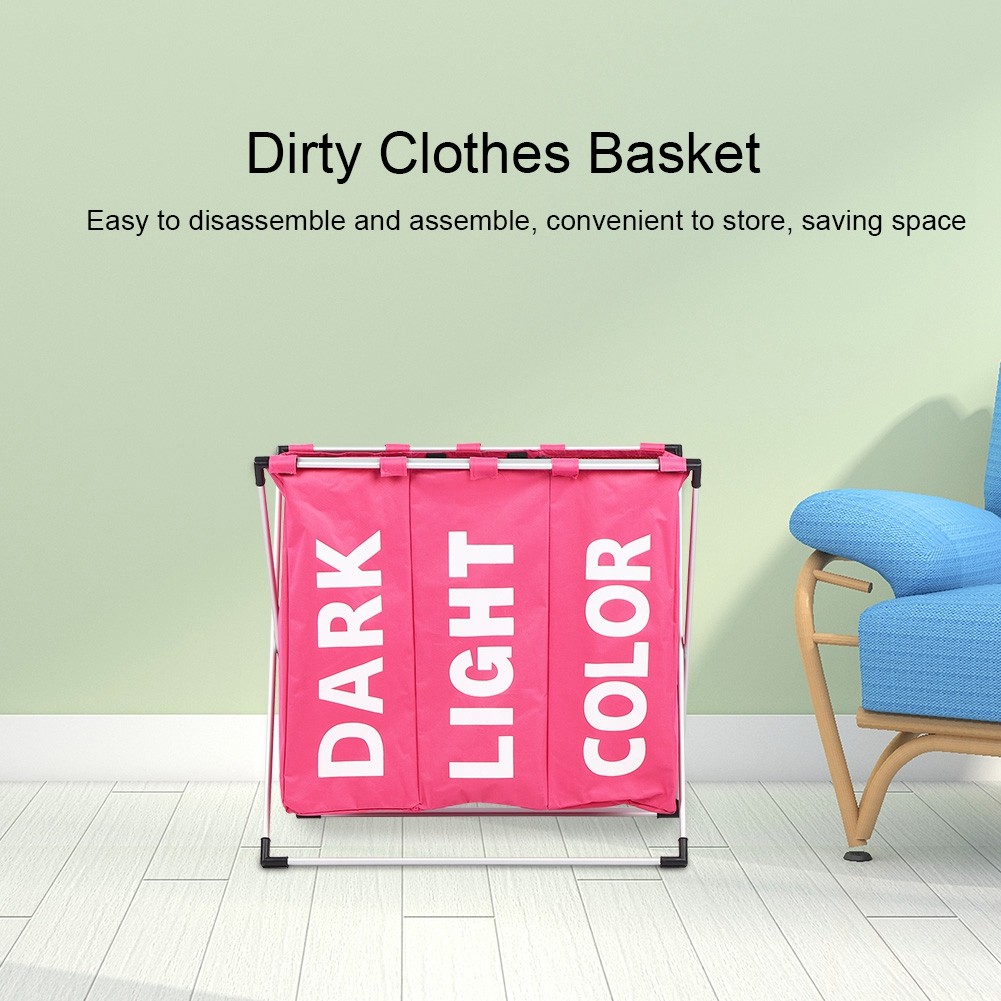 Simple Compartmented Laundry Basket Pink Oxford Cloth Foldable Dirty Clothes FI