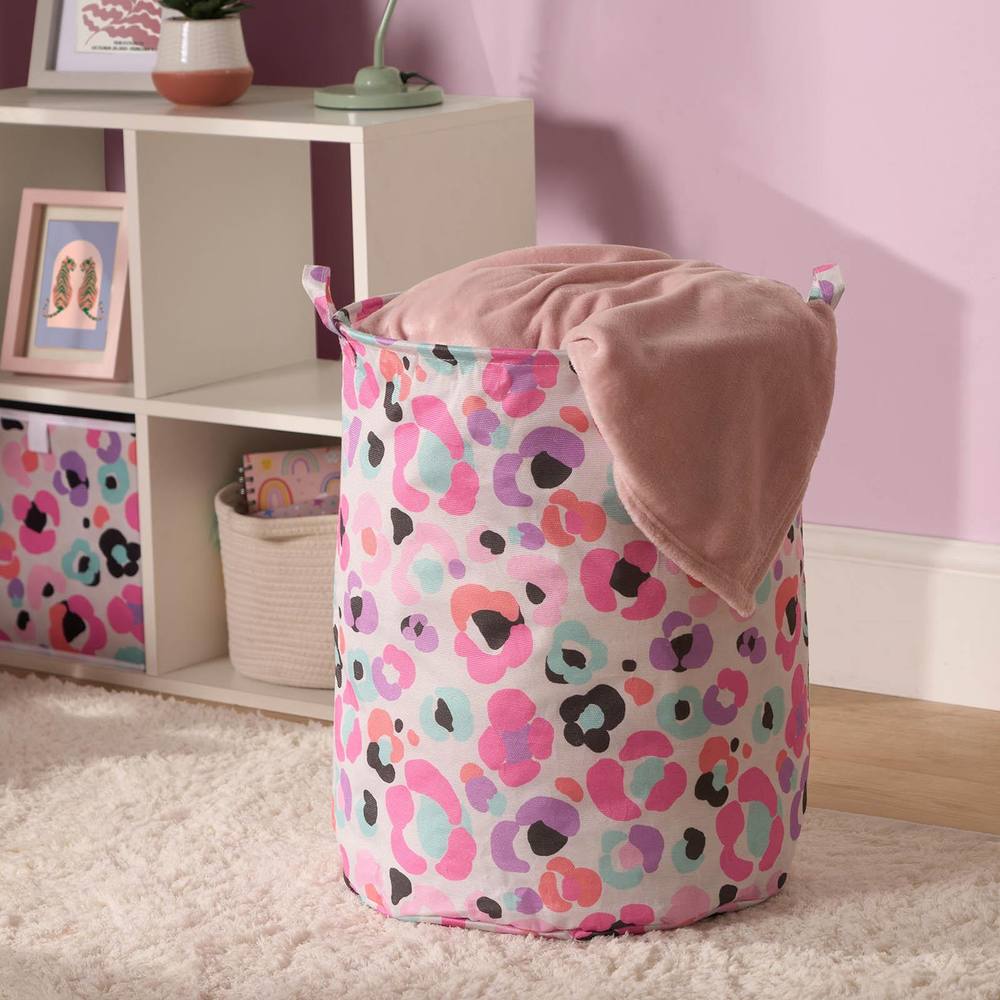 OHS Kids Laundry Basket Clothes Shoe Storage Toy Organiser Pop Up, Leopard - Multi in Pink