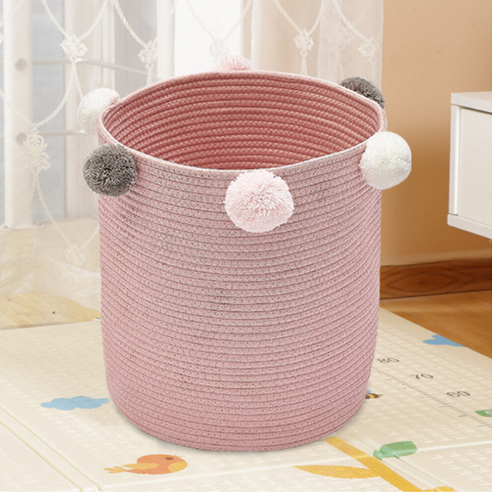 (Pink) Woven Basket Baby Kids Toys Storage Clothes Hamper Laundry Basket