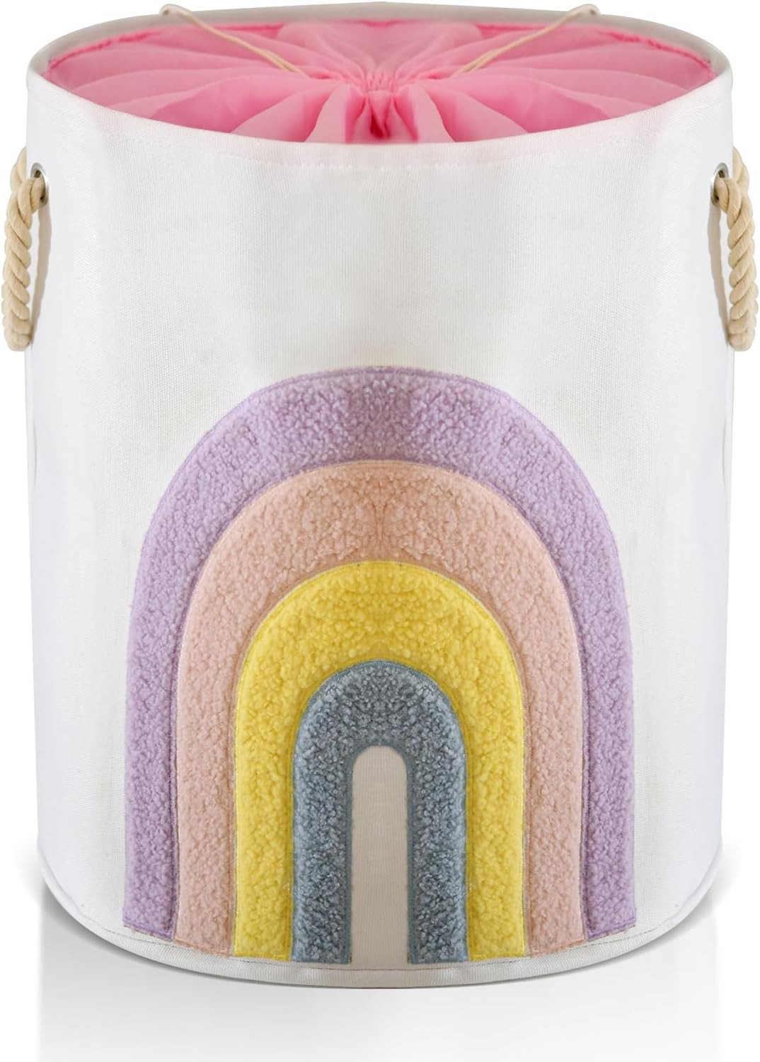 INough Baby Laundry Basket, Kids Washing Basket Baby Clothes Hamper 58L Pink Laundry Hamper, Canvas Large Rainbow Laundry Baskets with Drawstring Closure, Girls Nursery Toy Hamper, Kids Room Decor
