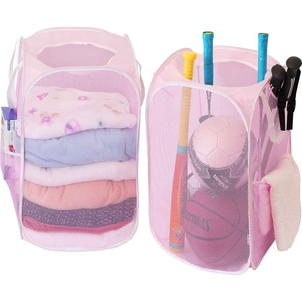 DUCOO Pop Up Hamper 2 PCS Mesh Pop Up Laundry Hamper Foldable Mesh Laundry Basket with Space Saving Design for Home Dorm Travel and Storage Pink
