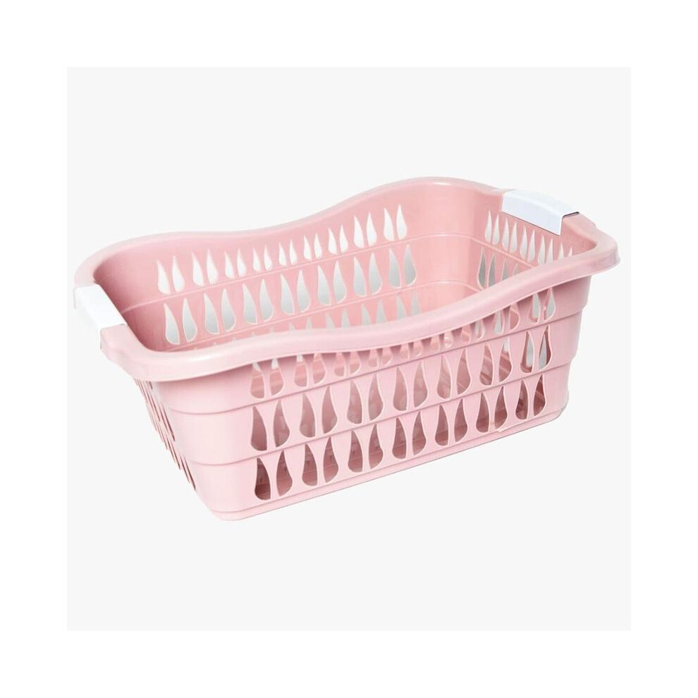 (Pink) Plastic Laundry Basket Hamper Washing Clothes Storage Bin with Handles UK