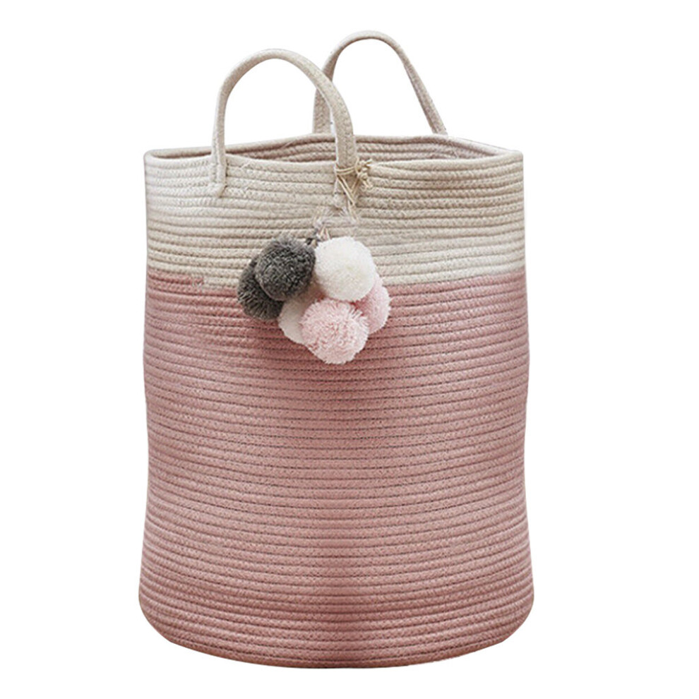 Pink Laundry Basket for Kids, Laundry Hamper for Nursery, Woven Rope Storage Bas