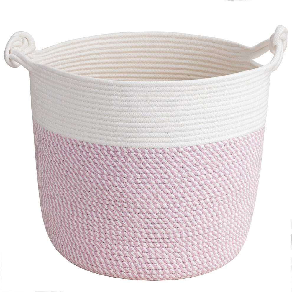 Organihaus Extra Large Rope Toy Basket for Kids Storage, 67L Woven Rope Laundry Bin for Blankets, Dog toys, Clothes - Bedroom, Bathroom and Living Room Hamper, 50x30cm, Pink