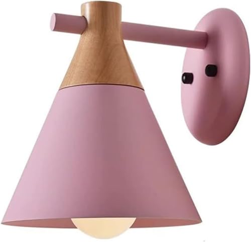 BDDCYWY Light Nordic Wall Sconce Wood Wall Light with Cone Metal Shade Modern Wall Mount Lamp Indoor Lighting Fixture Headboard Lamp, Children's Room Wall Lamps for Bedroom Bedside(Pink) Light