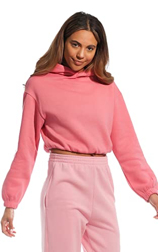 Light & Shade Women's Lslswt021 Women's Cropped Top Hooded Sweatshirt, Dusty Pink, S UK