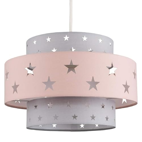 MiniSun | Modern Pink and Dark Grey Cut Out Star Design Ceiling Light Shade | Pendant Lights, Home Décor & Improvement Essential | 300mm Shade Width