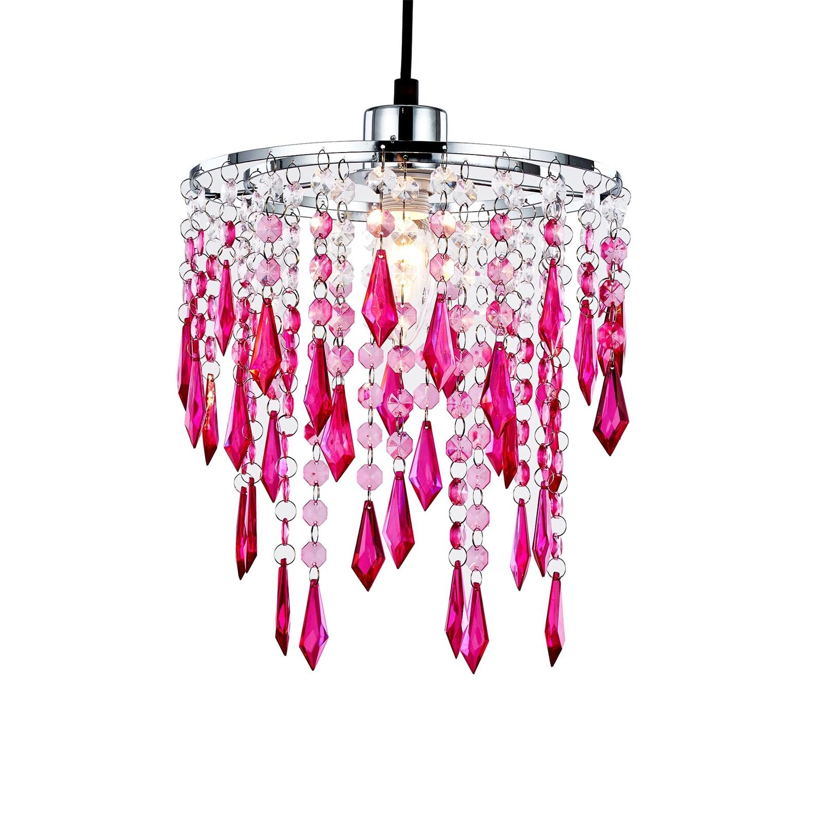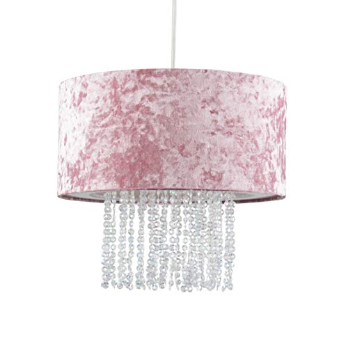 MiniSun | Modern Pink Ceiling Light Shade with Clear Acrylic Jewel Effect Droplets | Pendant Lights, Home Décor & Improvement Essential | 320mm Shade Width