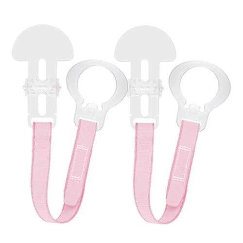 MAM Dummy Clip | 2 Pack | Baby Soother Clips Fit All MAM Soothers | Adjustable Length and Lightweight Design | Baby Accessories | Pink with Pink Strap | Dummies Not Included