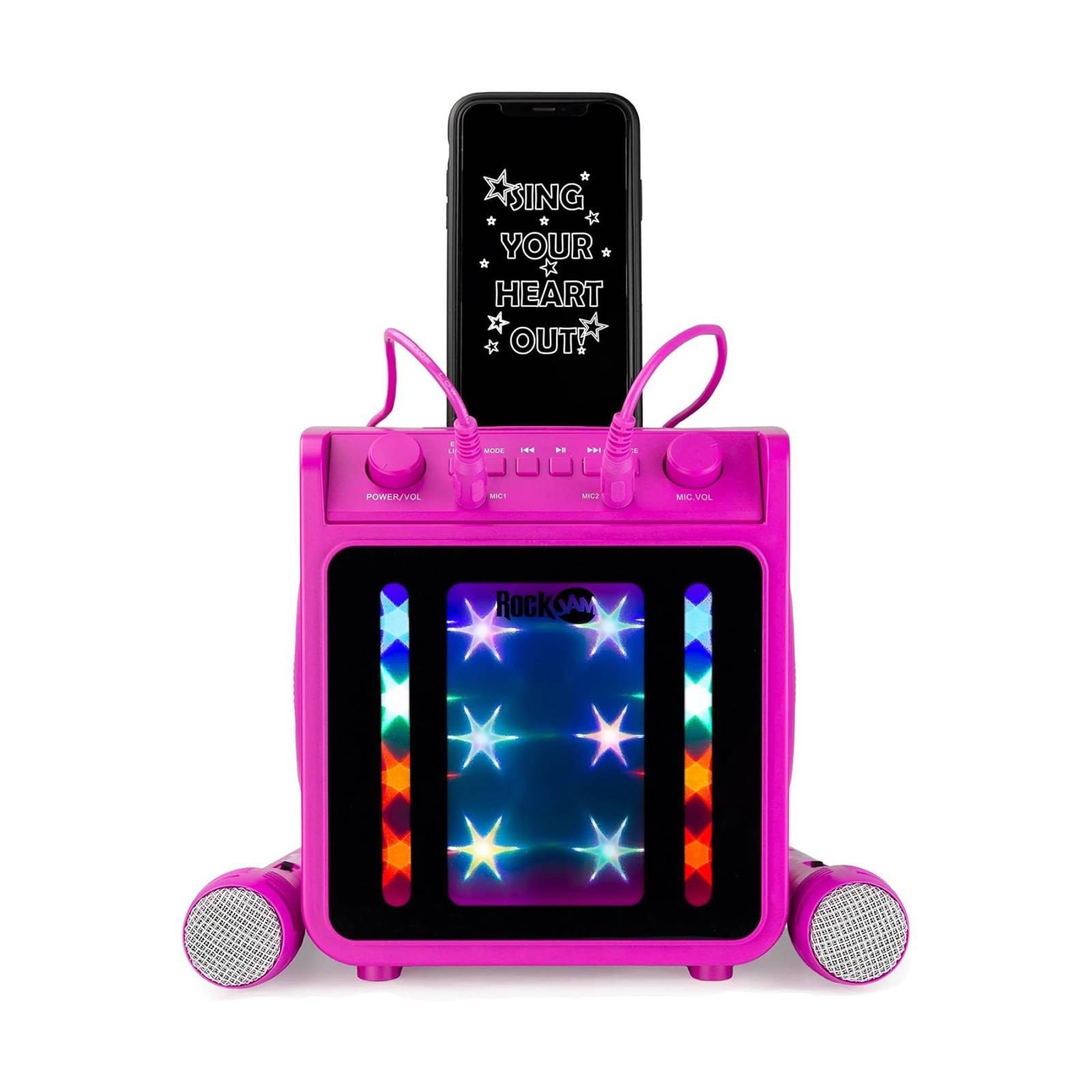 RockJam Rechargeable Bluetooth Karaoke Machine with 2 Microphones LED Light-PINK