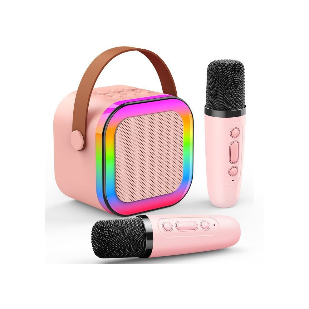 Mini Karaoke Machine for Kids Portable Bluetooth 5.3 Speaker Led Lights with 2 Wireless Microphones(Pink)
