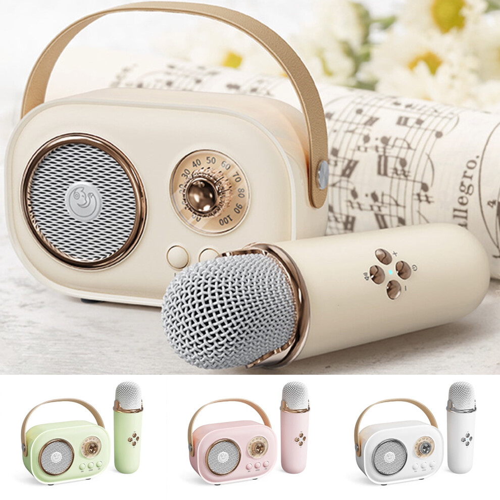 Volume Adjustable BT5.3 Karaoke Speaker Set with 2 Microphones, RGB Lights, 1200mAh Battery (Pink/White)