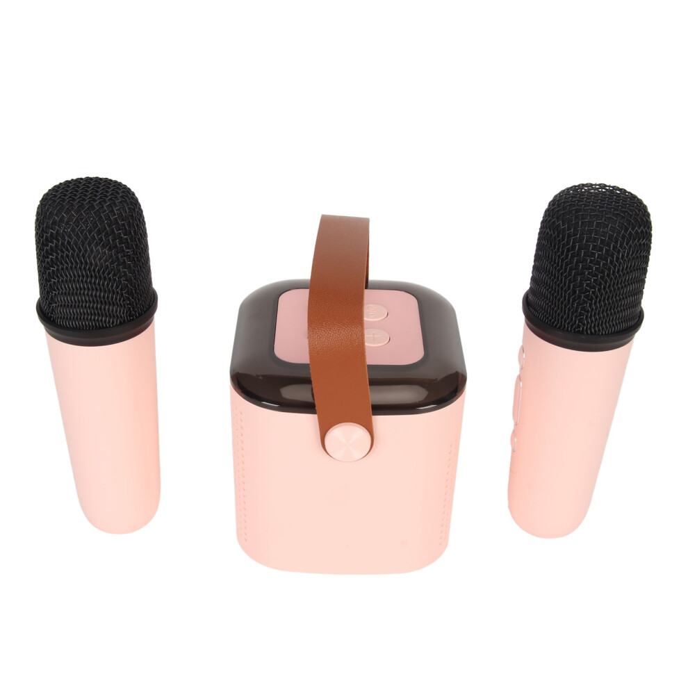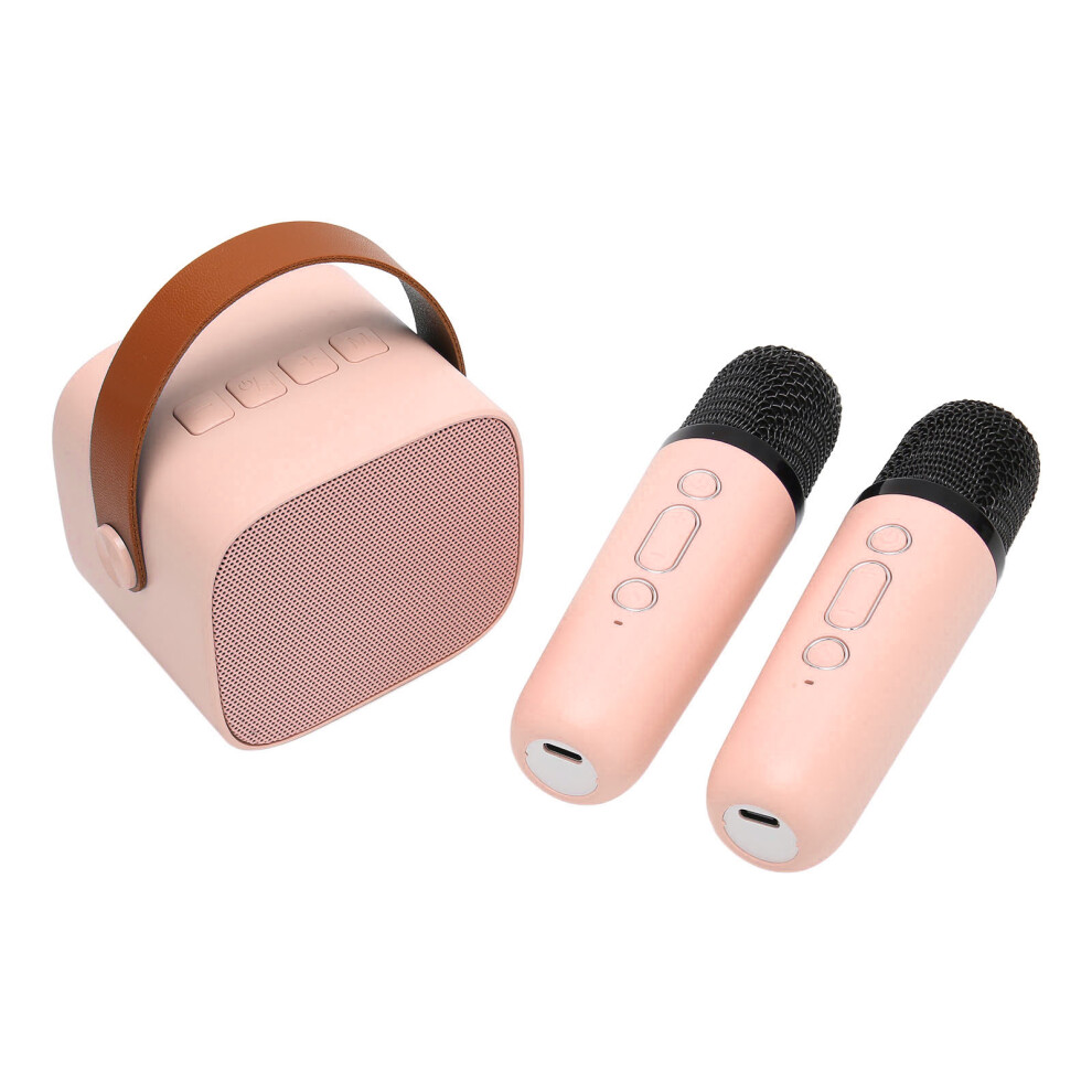 Mini Bluetooth Karaoke Speaker with 2 Microphones, Pink, 2000mAh