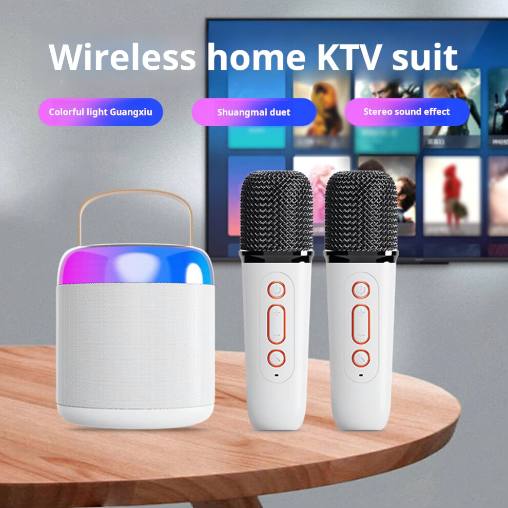 Karaoke Machine Mini Microphone and Speaker Wireless KTV Set with 2 Pink Microphones and RGB Light Effects