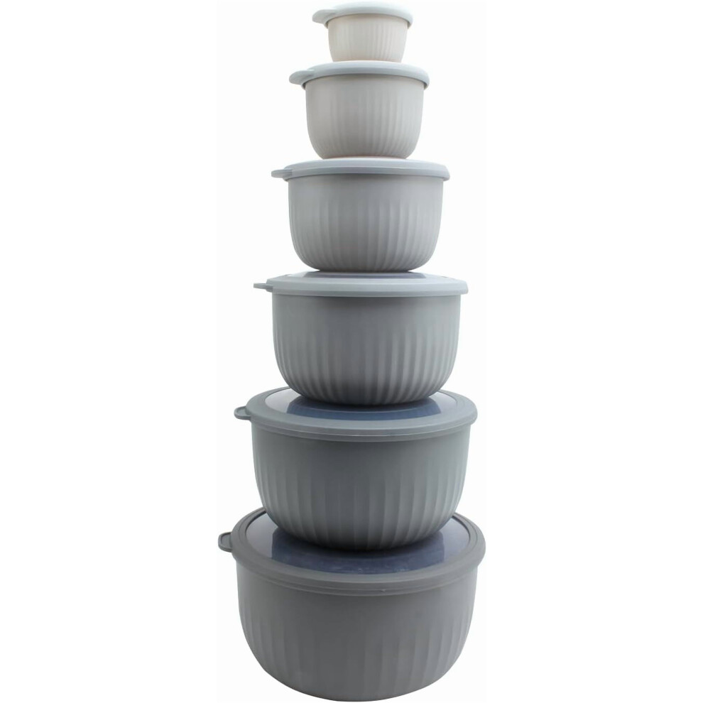 COOK WITH COLOR Prep Bowls with Lids- Wide and Deep Nesting Plastic Small Mixing Bowl Set with Lids 12 Piece Set - Deep Bowls Grey/Pink
