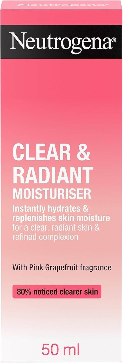 Neutrogena Clear & Radiant Moisturiser (1x 50ml), Daily Facial Cream for Dry Skin Prone to Blemishes, Uplifting Oil-Free Moisturiser with Pink Grapefruit Fragrance, for a Clearer, Radiant Skin