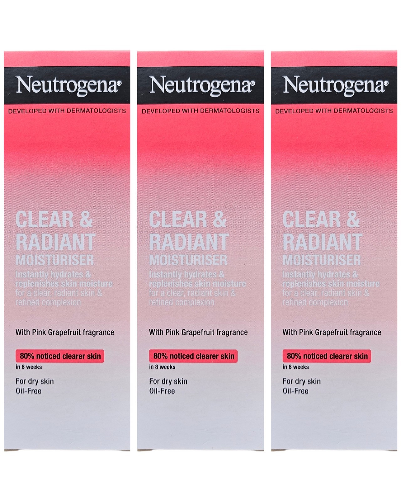 Neutrogena Clear & Radiant Moisturiser With Pink Grapefruit 50ml Pack Of 3