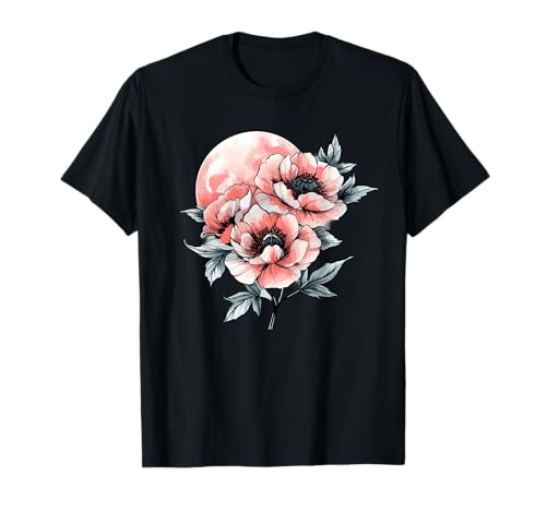Lunar Poppy Blooms with Full Pink Moon Floral T-Shirt