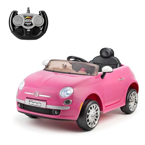 Xootz Pink Fiat 500 Ride On Car for Kids, Licensed Electric Car with Remote Control, MP3 Player & AUX, Opening Doors, Working Lights, Ride On Toys