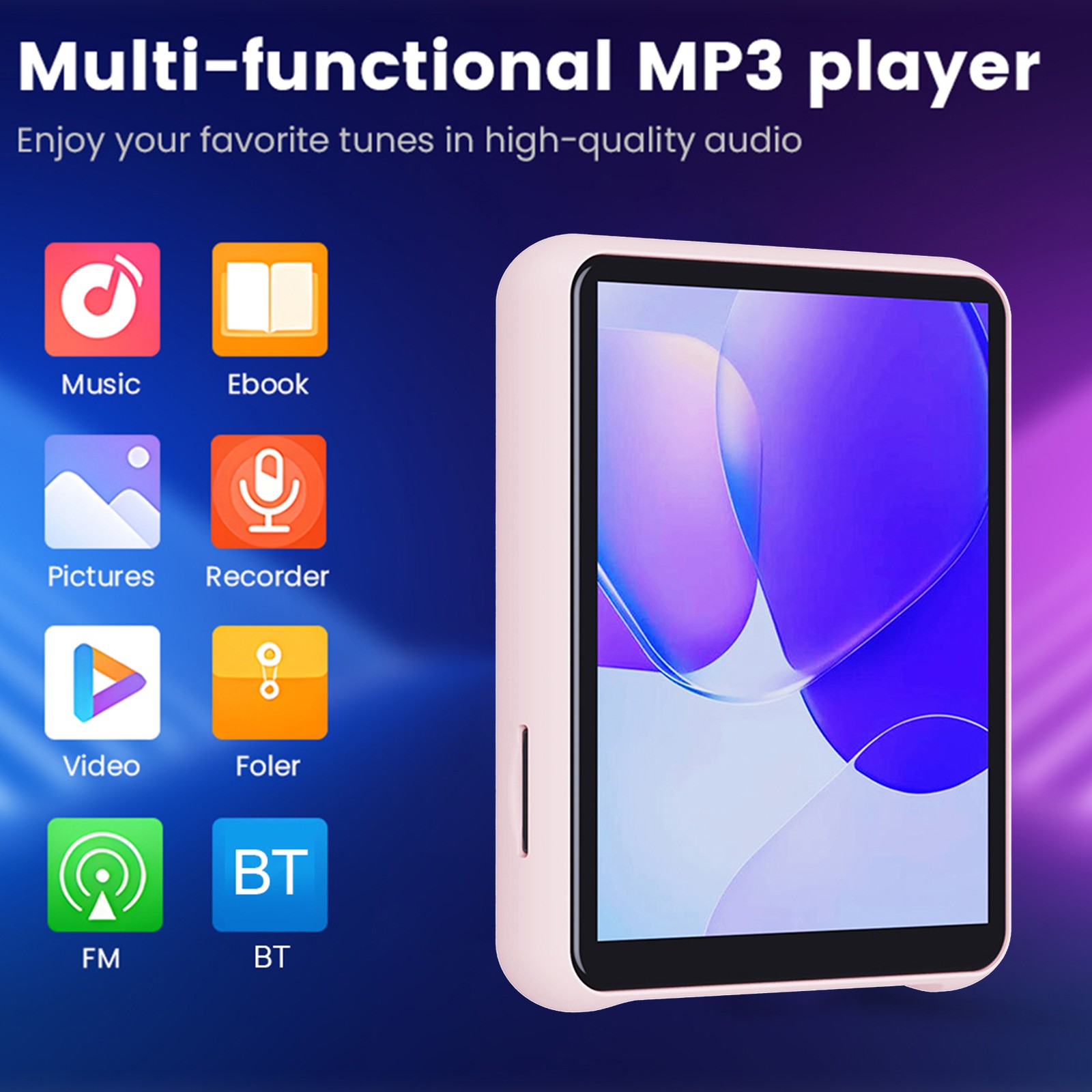 Pink MP3 Player Lossless Sound Quality Multifunctional Portable Support 64GB