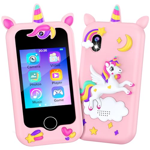 Kids Smart Phone for Girls, Unicorn Gifts for 3-8 Year Olds, MP3 Music Player with Dual Camera, Learning Toys for Christmas or Birthday Presents with SD Card