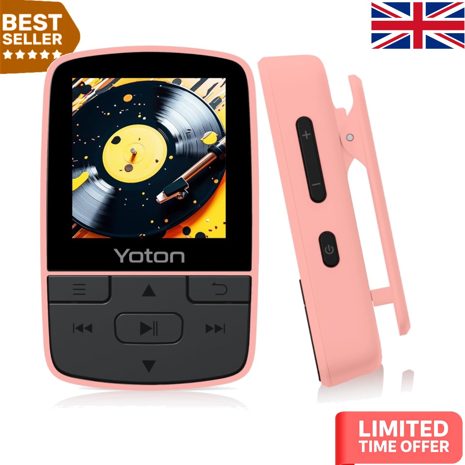 Portable Pink Bluetooth MP3 Player with 64GB Capacity - Music Anywhere You Go