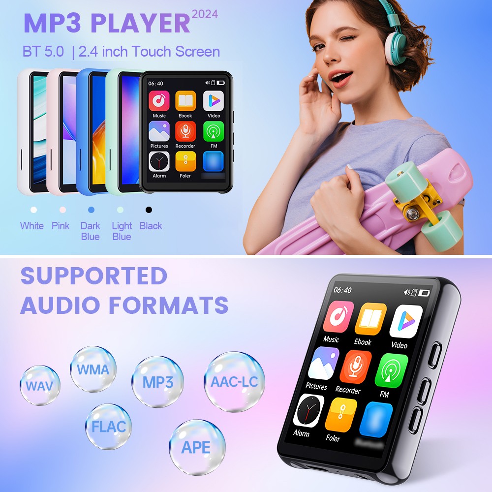 P-ink 128GB 2.4-Inch High-Clear Screen MP3 Player Full-Touch Screen Lossles HEN