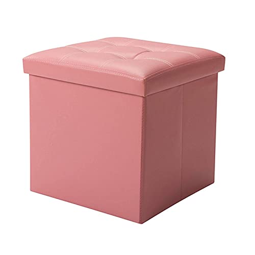 BGKASYHI Pink Leather Storage Ottoman Footstool Seat with Lid Multifunctional Footrest Shoe Bench for Bedroom Living Room and Office 15x15x15inch