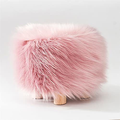 BGKASYHI footstool,Small Fluffy Foot Stool with Wood Legs,Luxuries Plush Footrest,Padded Step Stool for Living Bedroom Decorative Furniture,Round Faux Fur Ottoman-Pink b 25x25x28cm(10x10x11