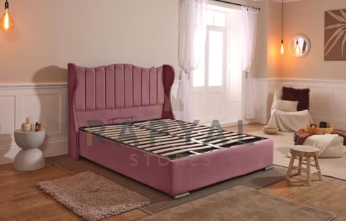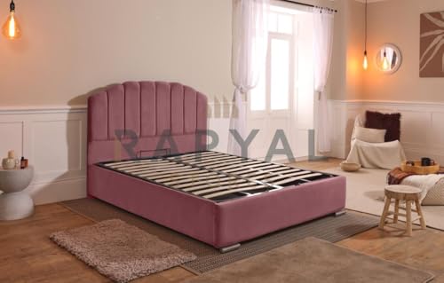 Rapyal Sleep Lisbon Bedframe with Optional Ottoman Storage – Stylish & Space-Saving (Pink, Double With Ottoman Storage)