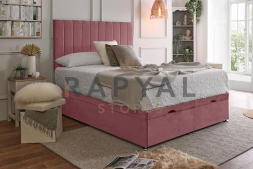 Rapyal Sleep Modern Velvet Upholstered Bed Frame – Ottoman Storage Option – Multiple Sizes & Colors Available (Pink, Single, With Ottoman)