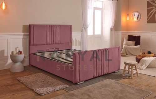 Rapyal Sleep Cairo Velvet Bedframe with Optional Ottoman Storage – Premium Comfort (Pink, Double With Ottoman Storage)