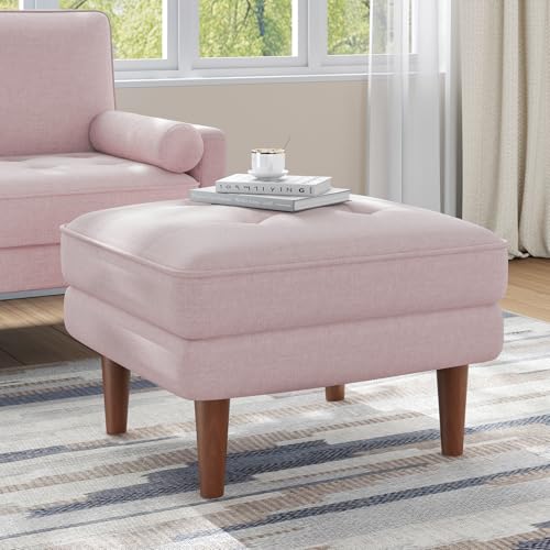 Vesgantti Small Ottoman Pink, Linen Ottoman with Spring Cushion, Rectangle Foot Rest for Couch, Entrance Footstool with Wood Legs, Footstool for Living Room, Bedroom