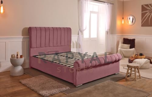 Rapyal Sleep Marseilles Bedframe with Optional Ottoman Storage – Elegant & Functional (Pink, Double With Ottoman Storage)