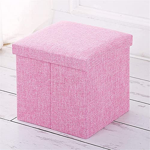 ISHEGREV Pink Upholstered Fabric Ottoman Cube with Foldable Storage Chest Small Footrest for Dorm Room or Hallway Shoe Bench with Breathable Design 30 x 30 x 30cm