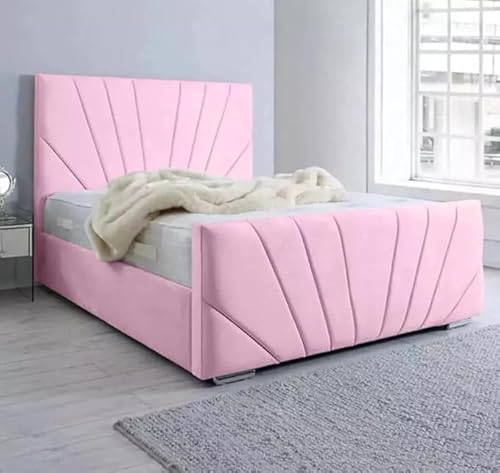 Cozelle LUXURY 4ft Small Double Pink SUNRISE HORIZON OTTOMAN WITH MATTRESS - Handcrafted Plush Velvet Amazing Design 50" Headboard - 20" Footboard