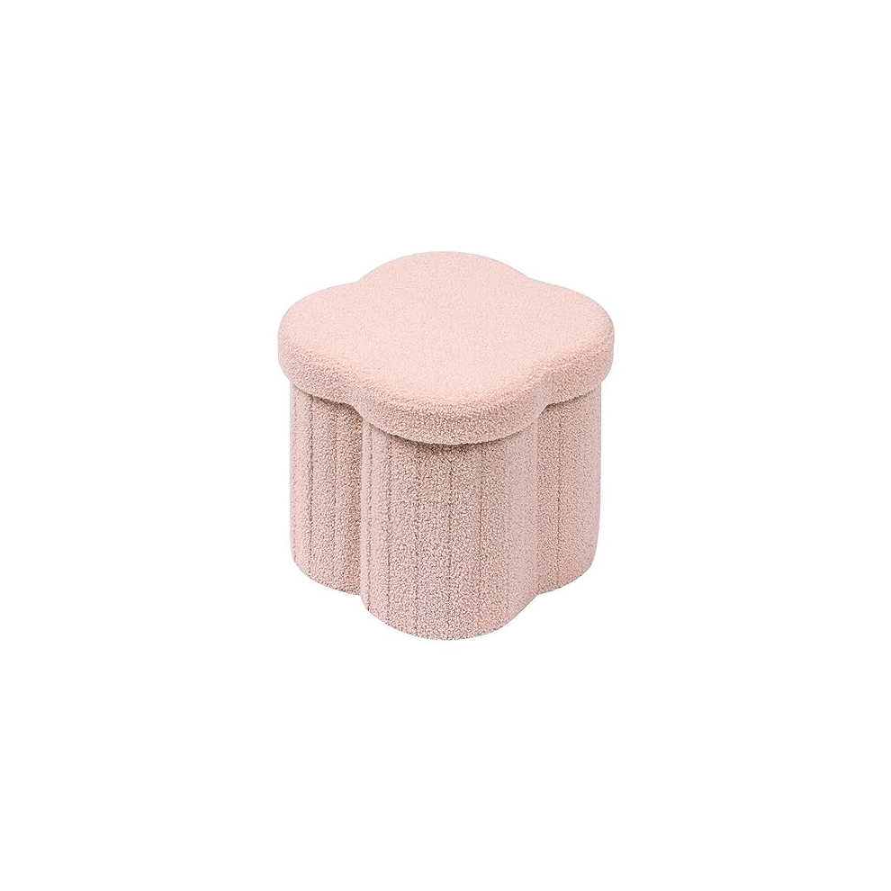 Bonlife Pink Ottoman Storage Box,Folding Storage Seat Box,Small Footstool For Living Room,Kid's Toy Chest Box,Teddy Flower Shape,32x32x32cm
