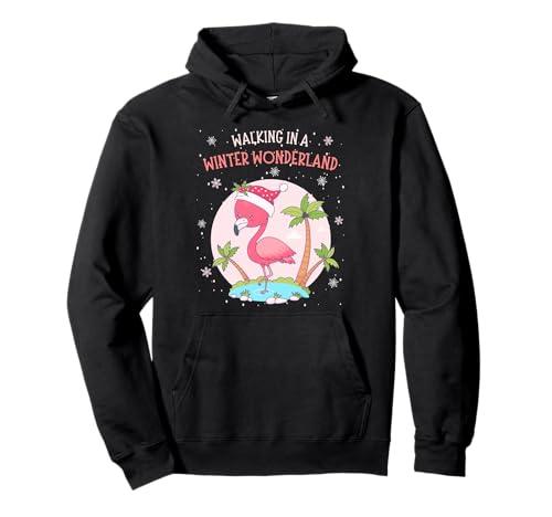 Funny Pink Flamingo Christmas Palm Tree Santa Snowflake Xmas Pullover Hoodie