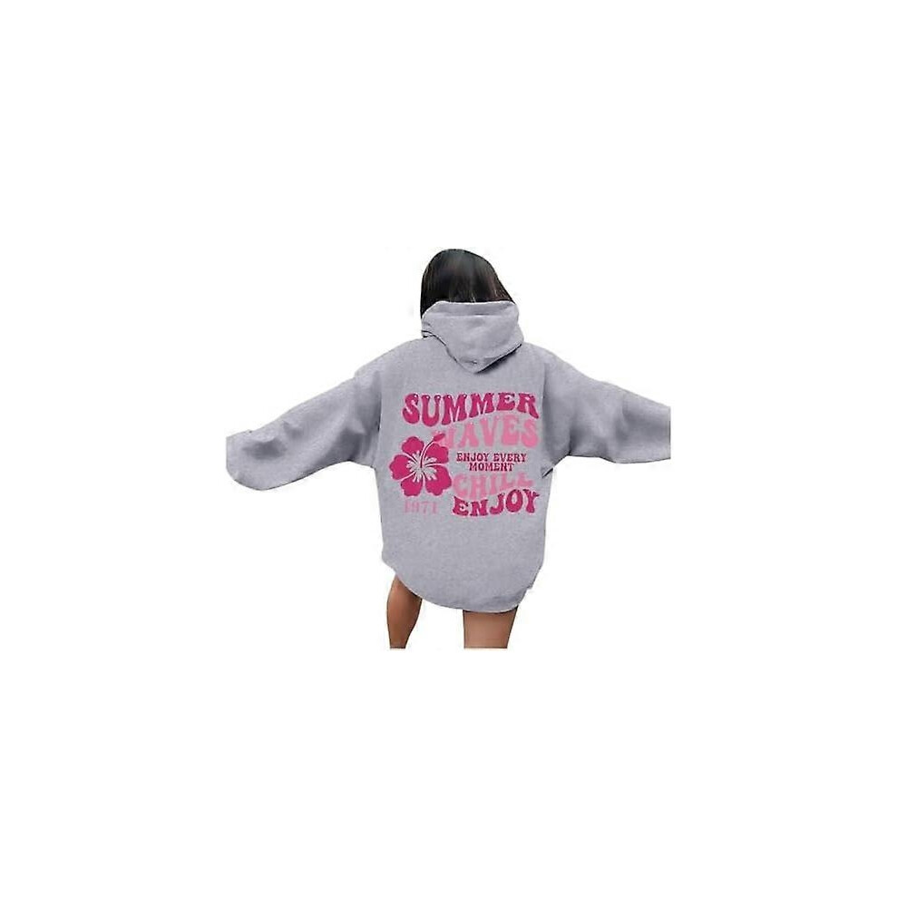 (02-gray, XL) Womens Pink Palm Puff Hoodie Preppy Sweatshirt Women Oversized Graphic Hoodie Long Sleeve Hoodies Sweatshirts