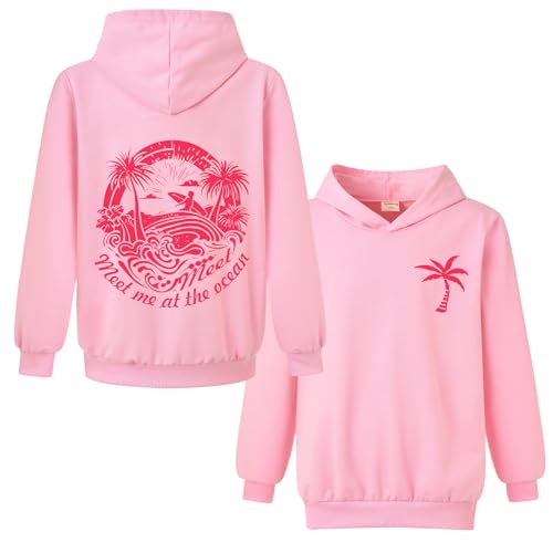Girls Hoodie Lightweight Oversized Hoodies Teen Girls Long Sleeve Pullover Palm Tree Print Sweatshirt Classic Hooded Sweat Round Neck Jumper Top with Pockets Clothing Age 3-14 Years (9-10 Years) Pink