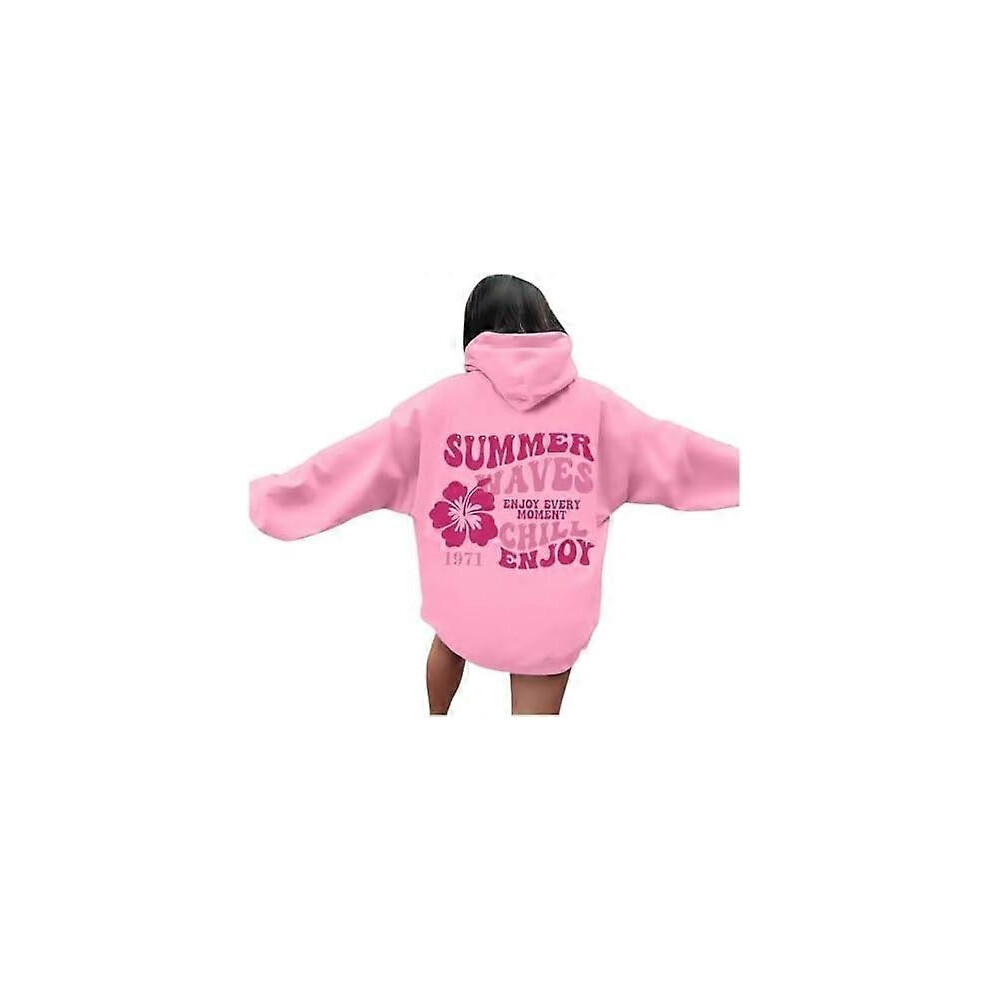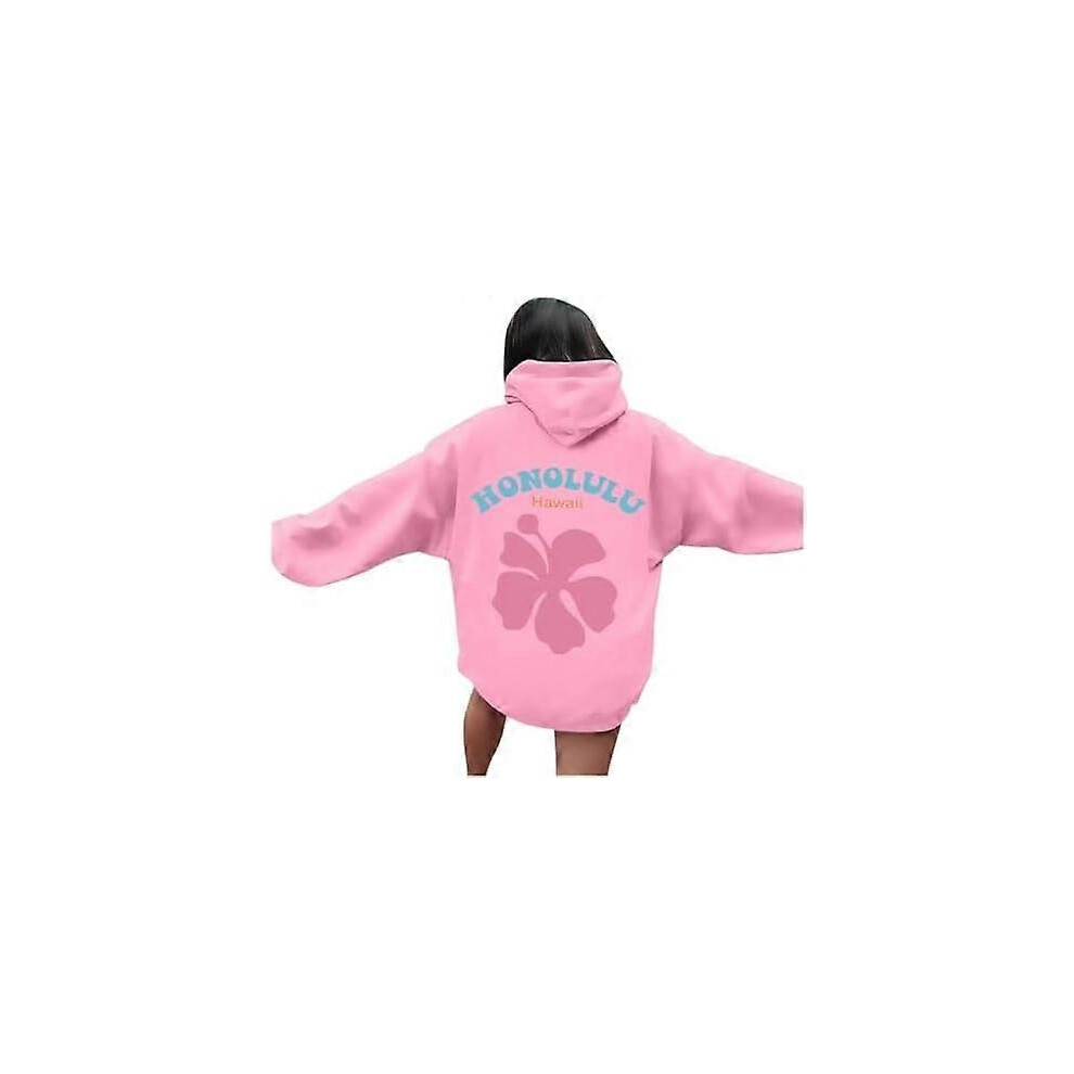 (02-pink, XL) Womens Pink Palm Puff Hoodie Preppy Sweatshirt Women Oversized Graphic Hoodie Long Sleeve Hoodies Sweatshirts