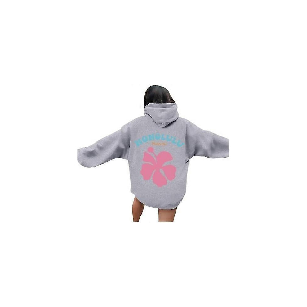 (02-gray, L) Womens Pink Palm Puff Hoodie Preppy Sweatshirt Women Oversized Graphic Hoodie Long Sleeve Hoodies Sweatshirts