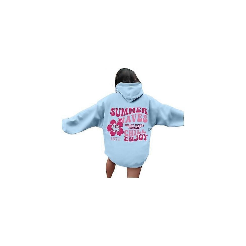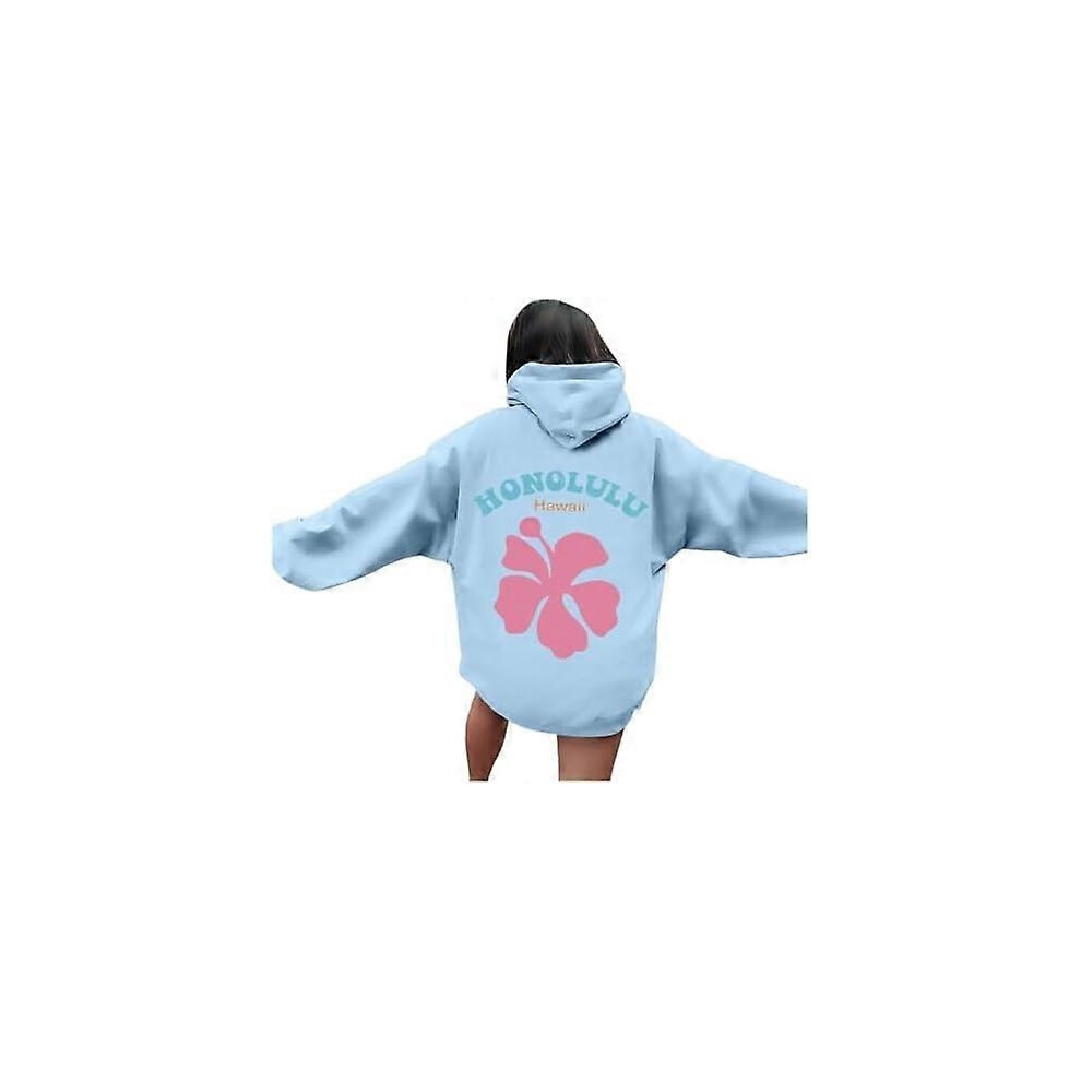 (02-light Blue, XL) Womens Pink Palm Puff Hoodie Preppy Sweatshirt Women Oversized Graphic Hoodie Long Sleeve Hoodies Sweatshirts